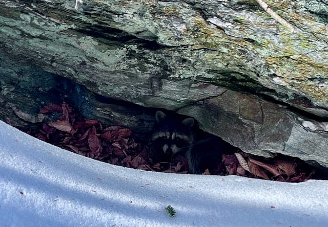 A raccoon wakes up, Piermont Mountain — by Bob Walker